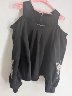 フリルと刺繍が特徴のホワイト長袖ブラウス。