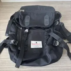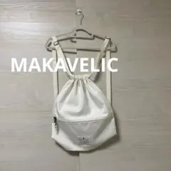 MAKAVELICのブラックリュック、調整可能なストラップとメッシュバックパネル付き。