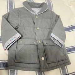 アイボリーのキルティングジャケット、フード付き、サイズ80。