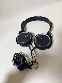 SONYのブラックオーバーイヤー有線ヘッドホン、ストレートケーブル仕様。