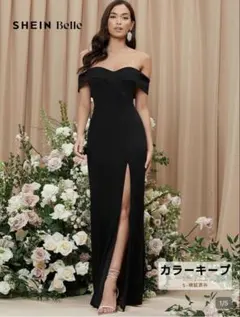 上品なチュールがふわっと広がる、ブラックのロングドレスです。