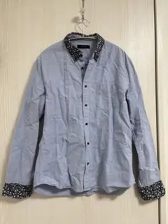 グローバルワーク リネン100% 七分袖 シャツ ライトブルー 綿 麻