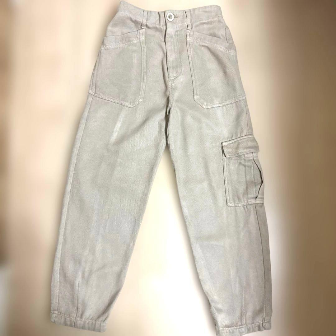 ZARAカーゴパンツ、前面に2つのポケットと側面に1つのポケット付き。