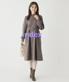 春秋冬向けの長袖Aライン切り替え膝丈ワンピース。