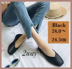 フラットシューズ パンプス バブーシュ 2way 23.5㎝ ブラック 黒
