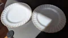 ファイヤーキング Fire King ホワイトスワール ミルクガラス製ボウル 金縁の波型デザインが特徴のホワイト陶磁器皿5枚セット ◆