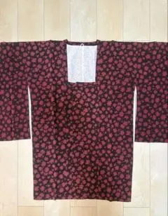 【美品】道行コート 花柄 正絹 身丈79 裄63 赤ピンク
