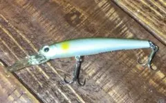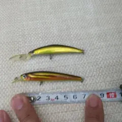 リアルな魚のようなデザインのミノー、ゴールド・オレンジ・ブラックのカラー。