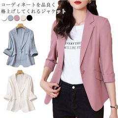 シンプルで洗練されたデザインのネイビーテーラードジャケット。