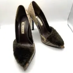 スエード素材のサファイアブルーとピンクのバイカラーです。