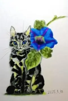 スヤスヤ猫 2枚セット【額なし】直筆 手書き 一点物