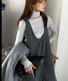 ウエスト部分がカットされたデザインになっている、オーバーサイズで着られるゆるっとしたサロペットです