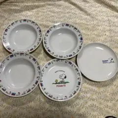 スヌーピーの可愛いイラストが特徴の陶器製プレート4枚セット。