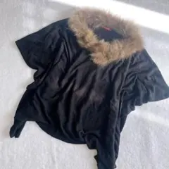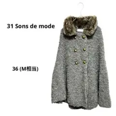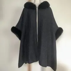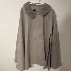 ポンチョ グレー マントコート レディース フェイクファー付 ケープコートV