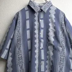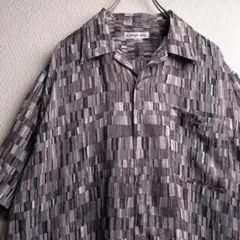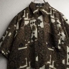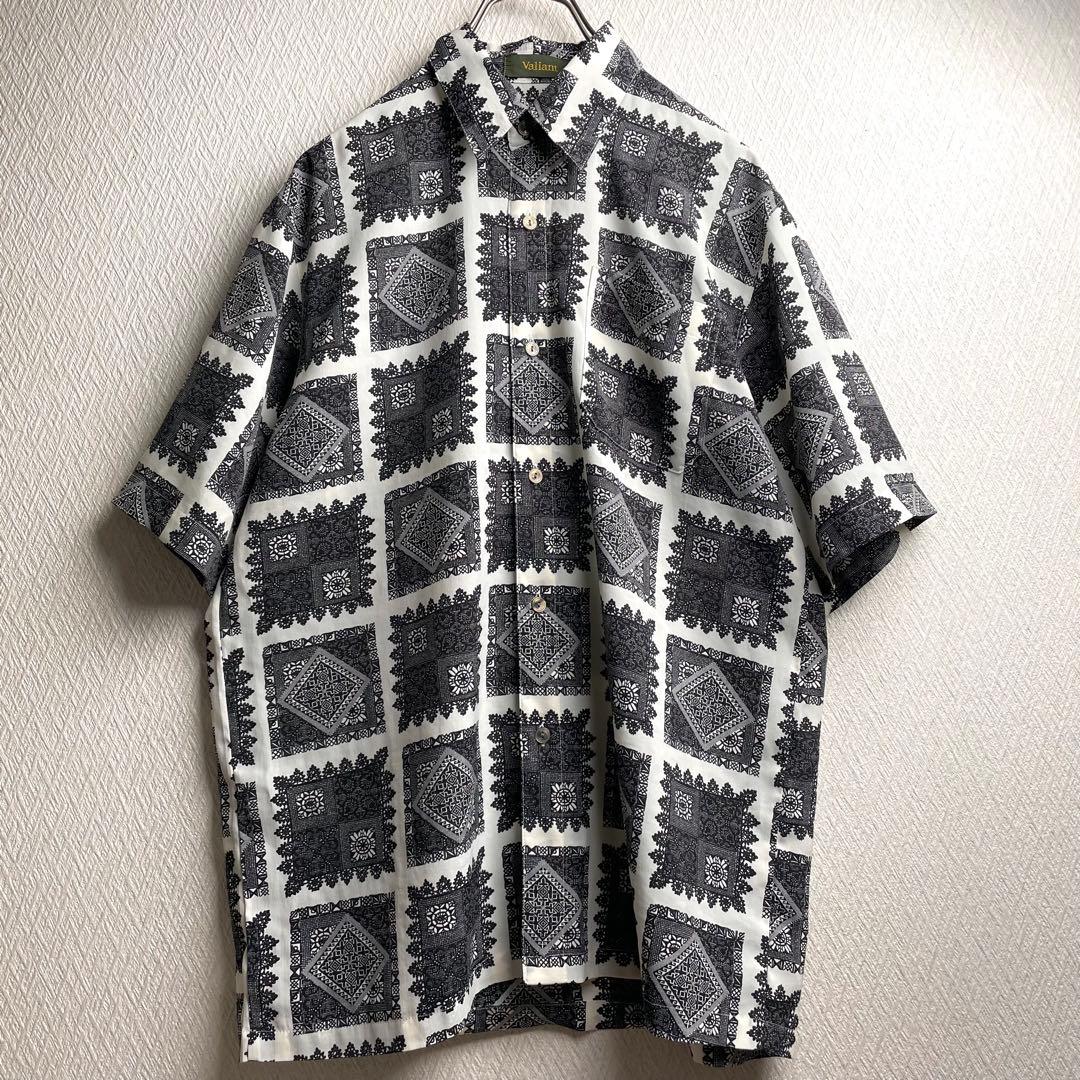 古着 レトロ シャツ 総柄 柄シャツ ガラシャツ 半袖 ブラック ホワイト
