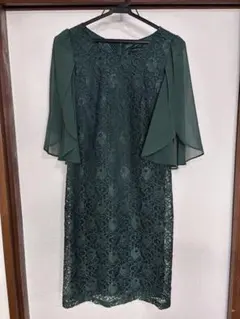訳ありお得 ドレス 半袖 パーティードレス ダークグリーン 刺繍 ブライダル