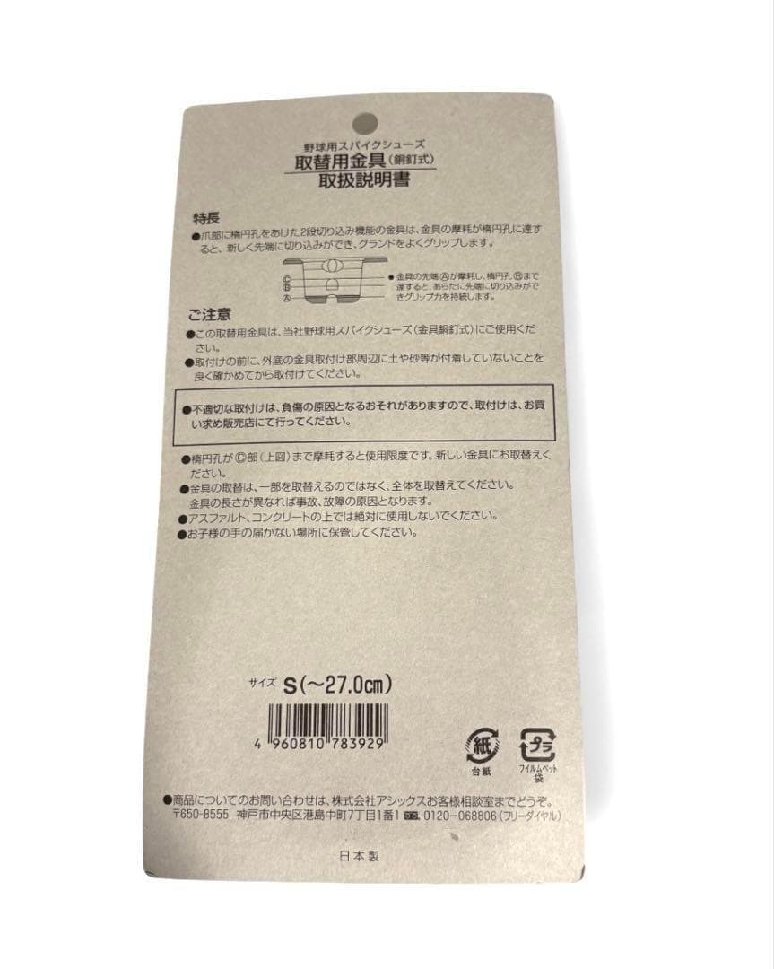 [アシックス] 野球 取り替え用 3本歯 金具 釘式 メンズ
