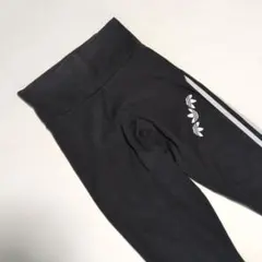 ブラックのadidasスパッツ、サイドに3本のストライプが特徴。