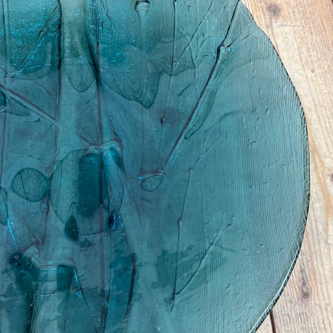 藍 カメイガラス リーフ型 葉っぱ形 竹 大皿 平皿 盛皿 ガラス皿 プレート