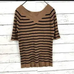 ネイビー Vネック 半袖 トップス M PLST サマーニット