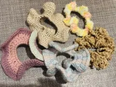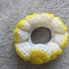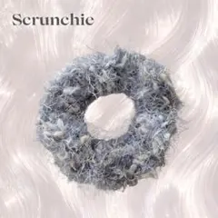 シュシュ 編み物 かぎ編み ハンドメイド Blue×Brown