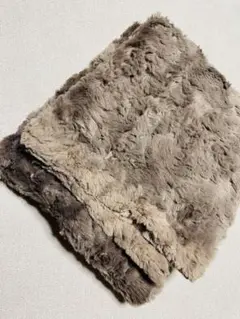 ベージュのファー素材で、サテン裏地付きのクリップ留め具が特徴のボア・ファーつけ襟です。