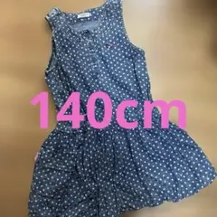 デニム 水玉模様 ノースリーブワンピース 120cm mikihouse