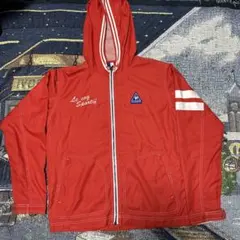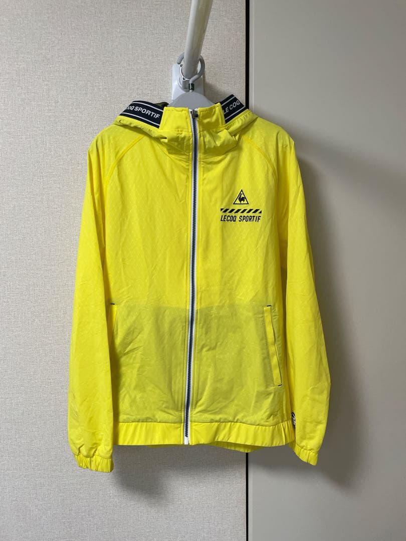 ルコックロゴ入りのイエロージャンバーフルジップデザインで前面ポケット付き。