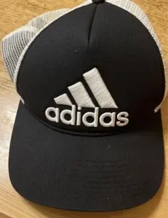 シンプルなデザインのブラックキャップ、adidasのロゴ刺繍付き。
