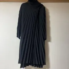 フード付きのブラックロングコート、ファスナー付きポケット付き。