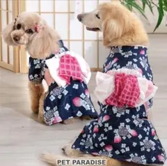 PET PARADISE 犬用 浴衣 日本画風 犬刺繍 ネイビーSS