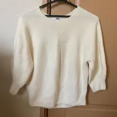 【ユニクロ】3Dコットン セーター ボリューム スリーブ イエロー 七分袖 XL