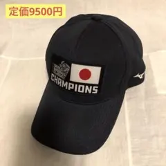 ネイビーのボディに、前面には「JAPAN」のロゴと日本国旗、ミズノのロゴが配置されています。