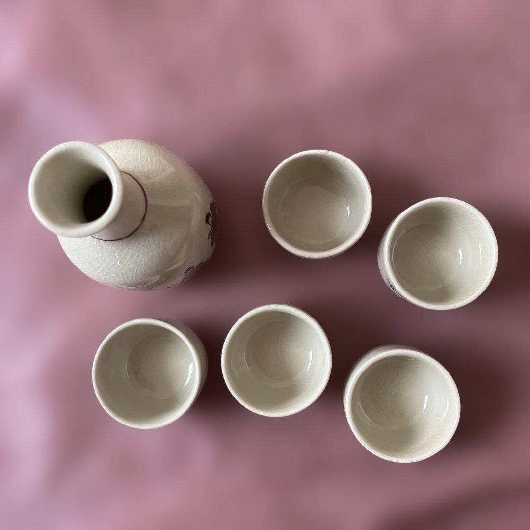伝統的な日本の絵柄が施された陶器製の酒器セット