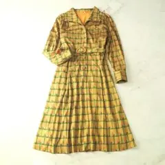 b 昭和レトロ プリーツ 切替 ロングワンピース ドット フレア ヴィンテージ