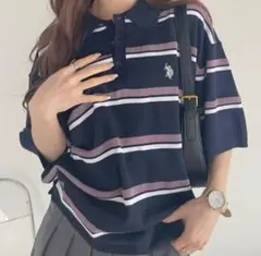 バーガンディのU.S. POLO ASSN.半袖ポロシャツ、刺繍ロゴ付き、Mサイズ。