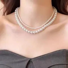 上品なツヤ感のあるパール風デザインを連ねた、シンプルで使いやすいロングネックレスです。