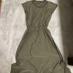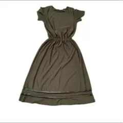 フラワープリントのブラウンカラー、Mサイズの半袖ロングワンピース