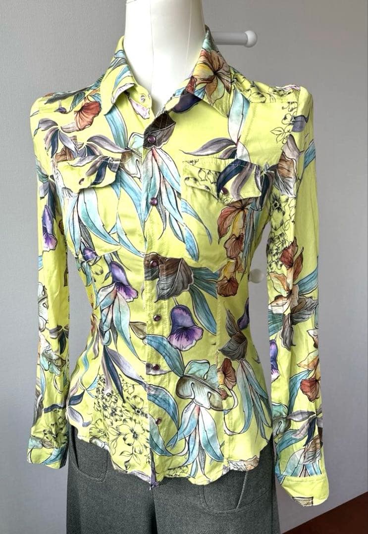 タグ付き インポート フラワー柄 イエローブラウス 長袖