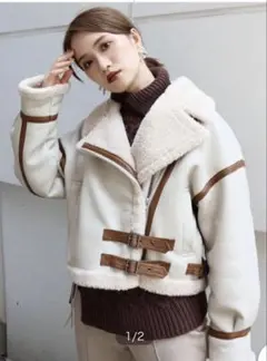 ベージュのフェイクムートンコート