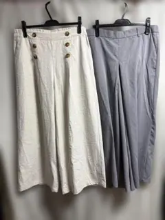 しまむら 裏起毛 ベージュ ワイドパンツ ゴムウエスト L