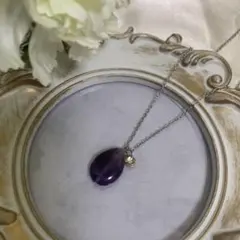 アメジストのタンブル型ビーズとガラスビーズ4個を使用しています。