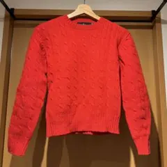ポロラルフローレン ヴィンテージ風 ケーブルニット セーター 赤 XL 色褪せ