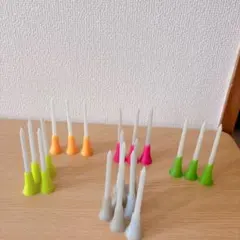 多様なカラーと形状のゴルフティーセット、プレイに最適。