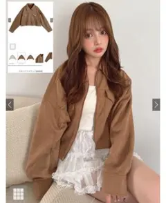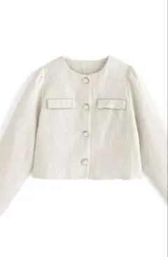 柔らかいファブリックのノーカラーオーバーサイズジャケット、カジュアルからエレガントなスタイルまで幅広く対応。