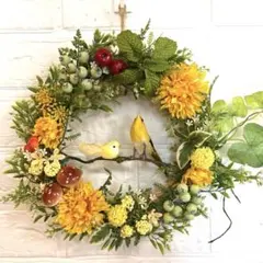 ホワイトのチューリップ、ローズをあしらいました花束の様なハーフリースです