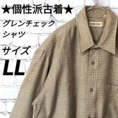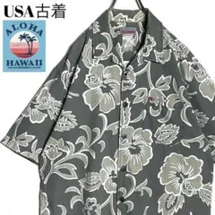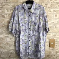 レトロ古着 総柄シャツ 長袖 アート柄 シェルボタン生地感サラサラ 紫色2XL