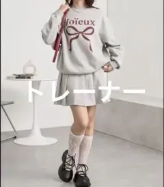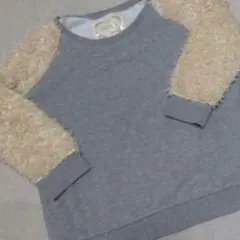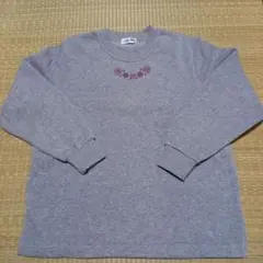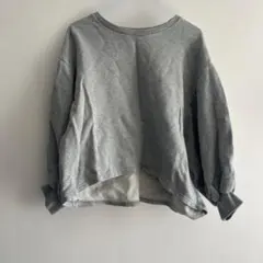 宇宙柄のプリントが特徴的なグレーのトレーナー。