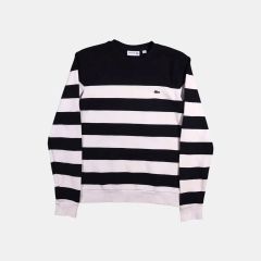 LACOSTE スウェット トレーナー プルオーバー ラグランスリーブ ボートネック 裏地なし 異素材 ドッキング ボーダー ワンポイントロゴ刺繍ワッペン おしゃれ かわいい かっこよい