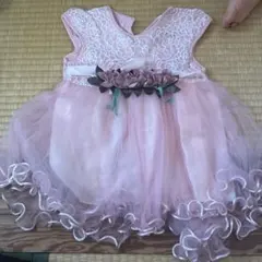 チュール付きドレス ピンク刺繍入り
